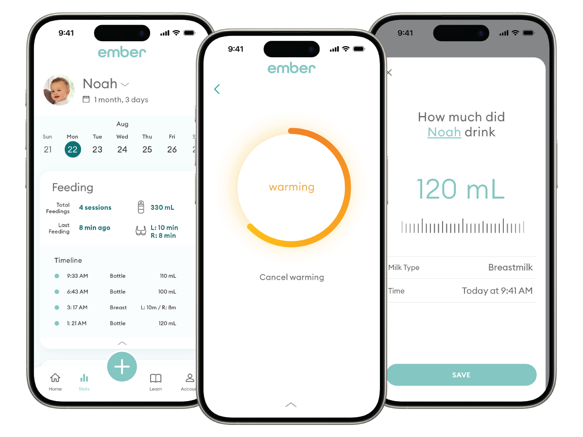 The Ember Baby app provides an integrated smart solution to prep, track and monitor feedings, as well as your baby’s growth.
