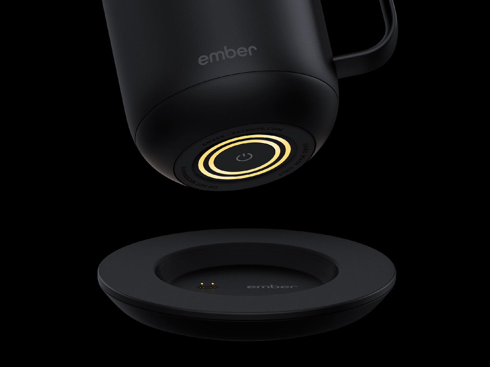Signature gold rings accent the bottom of every mug to quickly charge your Ember when placed on the coaster.